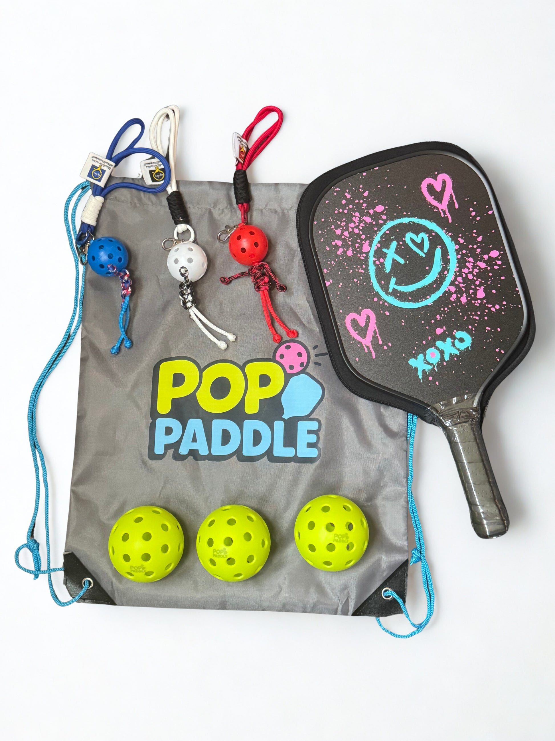 🎁 Includes 3 balls + cinch bag + 1 Keychain + Paddle Cover